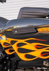 Une autre pièce splendide d'Arlen Ness pour enjoliver même le dernier détail aux modèles Touring: les fermetures des coffrets. Ces caches donnent la juste touche aux coffrets des Touring à partir de 1993 inc...