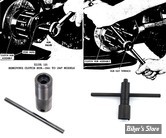 Cet outil sert en fait pour tous les moyeux à 3, 5 et 10 goujons des modèles 750cc et Sportster et permet en outre d'arracher des rotors de génératrice et des pignons moteur des Big Twins ainsi que des pignons boîte de vitesses des Sportster. Le Kit