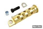 Blue bicycle kick starter pedal and axle assembly includes bushing, bolt, and spring clip.