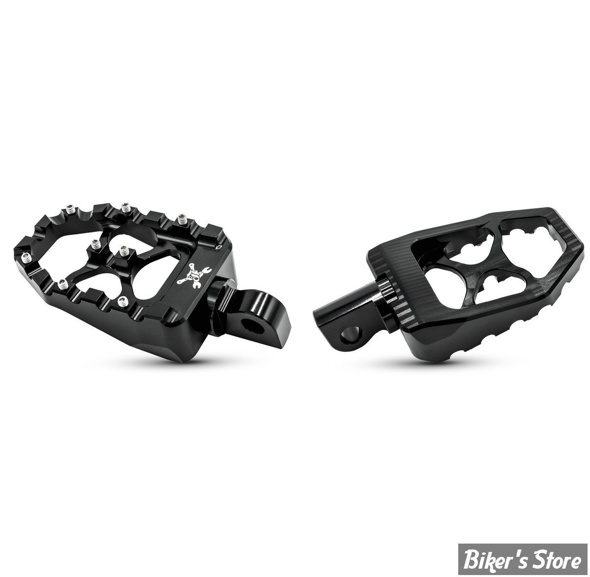 Acier revêtu de poudre noir satiné - Forme carrée pour une touche de modernité sur l'esthétique classique du motocross - Logo emblématique Burly Brand gravé pour un style distinctif - Fabriqué en alliage d'aluminium léger et de haute qualité pour des performances optimales - Usinage CNC de précision, garantissant durabilité et finition élégante - Système de fixation réglable pour un positionnement personnalisé - Vis de réglage assurant une adhérence optimale des pieds pour différents styles de conduite, sur route ou hors route.