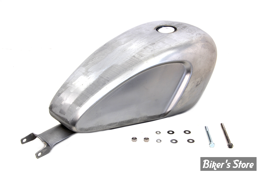 Legacy style 3.8 gallon gas tank with stock screw bung gives functional styling and improves driver comfort.
