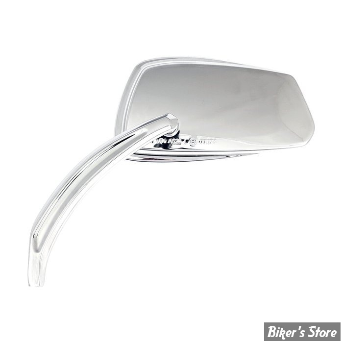 Construction en aluminium moulé sous pression avec une tige incurvée. Dimensions de la tête du miroir : environ 140 mm de large x 85 mm de haut. Hauteur totale : environ 140 mm. Homologué ECE.