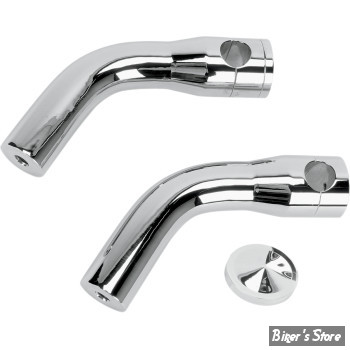 Pour guidon de 1". Fabriqués en aluminium Billet 6060-T6 puis chromé, visserie de 1/2"-13 (vendue séparément). Les risers spéciaux pour FXSTS ré-utilisesnt les goujons d'origne.