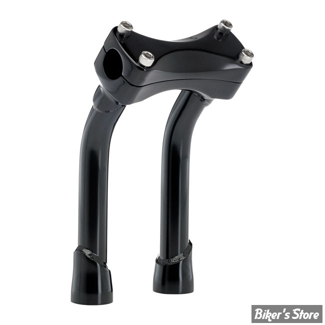 Gloss black electroplated finish. This comes with approval. With 2" (5.1cm) pullback. For 1" (25.4mm) handlebars. Constructed from investment cast steel upper & threaded lower. Riser tubes are TIG welded seamless 4130 chromoly with 3mm thick tubing and 1/2-13 threaded mounting holes which will take stock riser bolts. Spacing is 3-1/2" (89mm), to fit most H-D top triple trees. The top clamp bolt pattern will take stock H-D speedo & tach brackets. Note: Check your local MCS dealer or the MCS sales department for exact type of approval and validity on bike model and years on the test report.