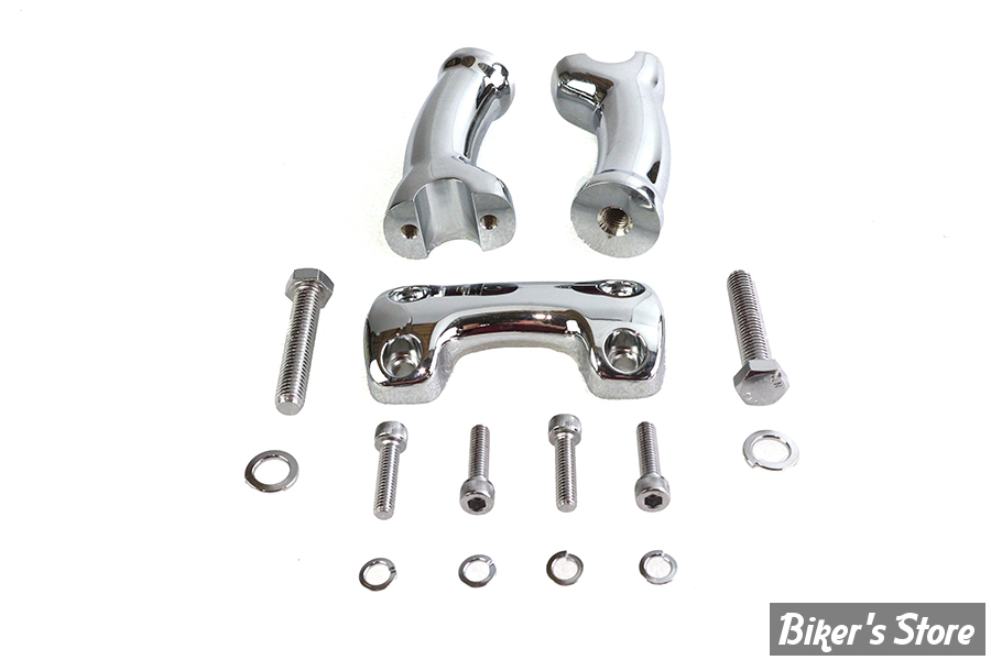 Includes riser, matching handlebar clamp and the clamp hardware. Riser base is drilled and tapped for 1/2"-13 threaded bolts. *NOTE: List of OE additional parts are from existing motorcycle. *NOTE: May require the separate purchase of additional components.