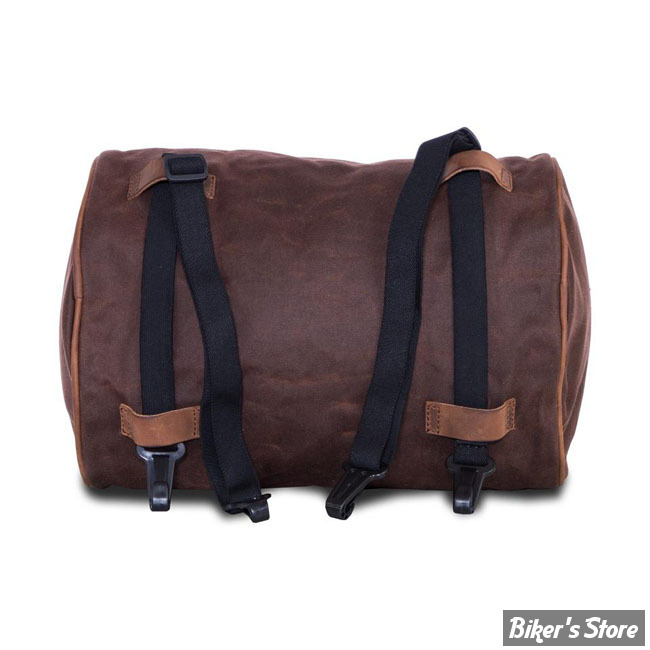 Approx. dimensions: 38cm wide x 28cm diameter. Made from waxed cotton canvas with a polyester inside lining and finished with oiled ranger leather. Great universal roll bag for any sort of trip to anywhere. Throw on the back of your bike or carry it on your shoulder and go. Note waxed cotton: The 'Waxed Cotton' material, as used in the LongRide product line, is manufactured from approx. 650gr/m 100% cotton cloth. This cloth is impregnated with wax, which makes it durable and gives it water repellant characteristics. This is the historically correct predecessor of synthetic developments like, for instance, Goretex. This is the genuine classic material. Note ranger leather: Genuine leather, harvested from West-European cattle. The Ranger Leather is the neck part and this is used for its nice grain. It is environmentally friendly vegetably tanned on a base of the bark of the Mimosa tree. After tanning it is saturated with leather grease for preservation purposes. Maintenance, on a regular base, is advised, like with all leather products.