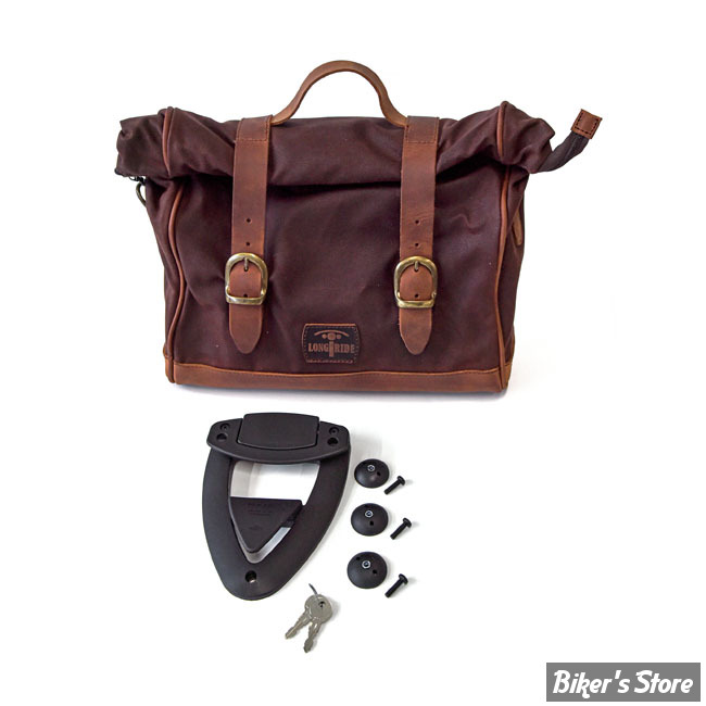 SACOCHE LONGRIDE - CLICK-ON OLD CHOPPER SADDLEBAG WAXED COTTON - 18 LITRES - MARRON