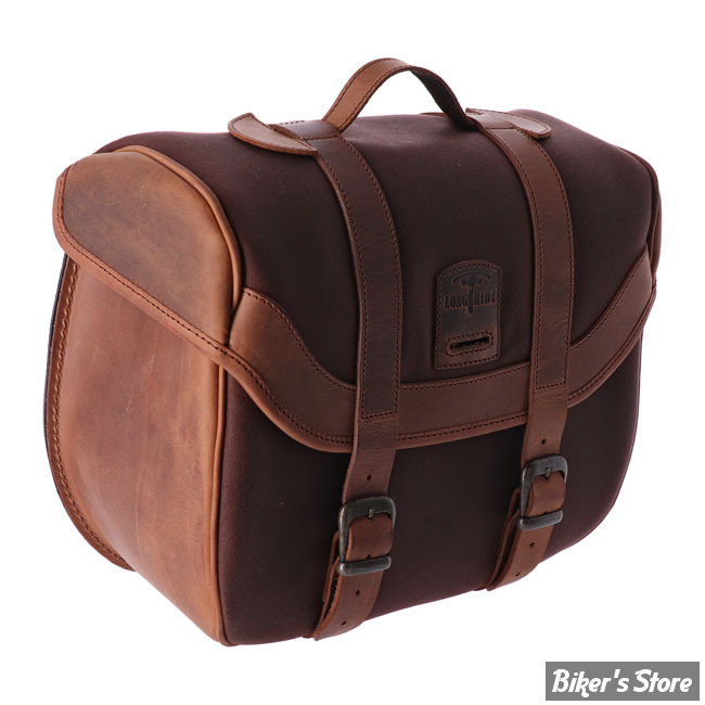 Longride Heritage saddlebag only without mounting brackets. Designed to be used with model specific or universal 'Click & Lock' Longride saddlebag brackets. The low profile carrying handle is perfect for off-bike use. The Click & lock system makes it easy to remove the bag from your bike and carry your gear with you or into house, motel or tent. Manufactured from waxed cotton material with genuine Ranger Leather. Can be used left & right since bags are symmetrical. Approx. dimensions: 29cm high x 29cm wide x15cm deep. Approx. volume 14 liter. Note: Universal 986406/986407 or a model specific saddlebag bracket is required for on-bike mounting and sold separately. Note: Some models will require turn signals relocated to the rear of the fenders struts.