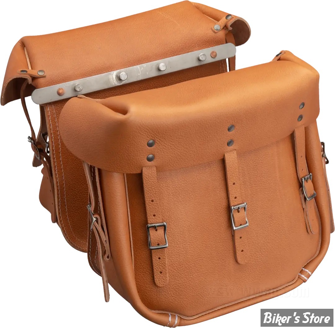 Très belles sacoches en cuir telles qu'on les avait aux modèles de l'armée. On les fixe comme original au support du porte-bagages à l'aide de 4 broches. Elles ne sont adaptables sans modifications aux modèles cadre rigide qu'en les combinant avec notre porte-bagages Army Style ref. #43-001. De fonction multiple, réalisées en cuir marron de qualité 'heavy duty' et idéales pour les restaurations ou les projets Old Style.