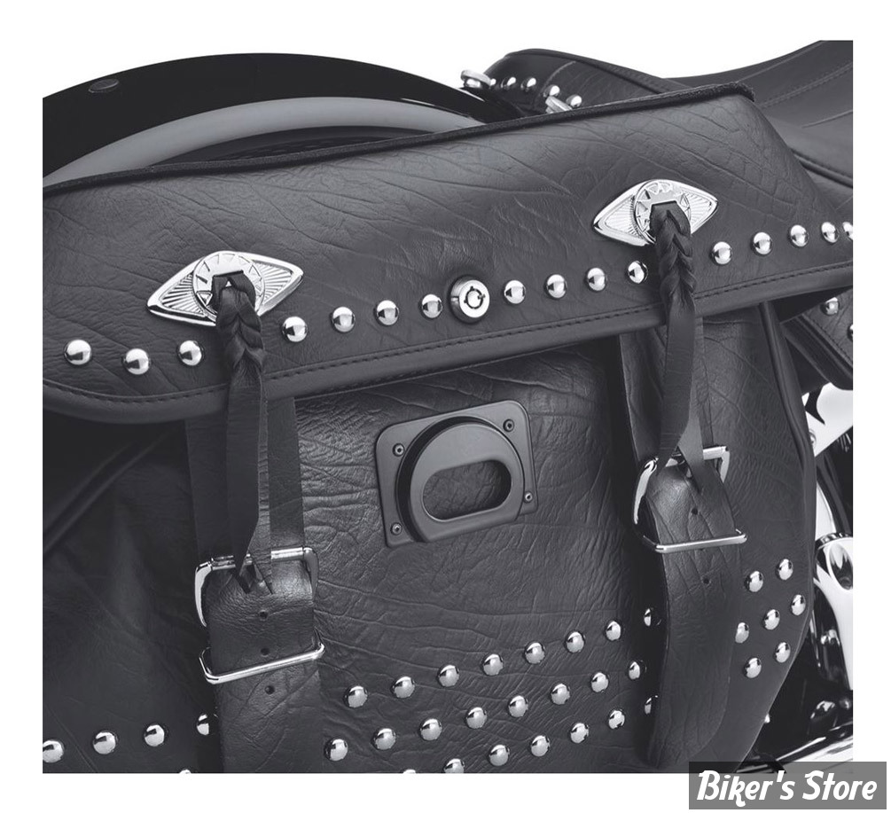 Convient aux sacoches d'équipement d'origine des Softails FLSTC de 2000 à 2015 et kit de sacoche de style Heritage P/N 90876-05. Nécessite l'achat séparé du kit de serrure à barillet à clé à encoder P/N 90300010. Consultez la notice pour le montage des éléments supplémentaires nécessaires. Le kit