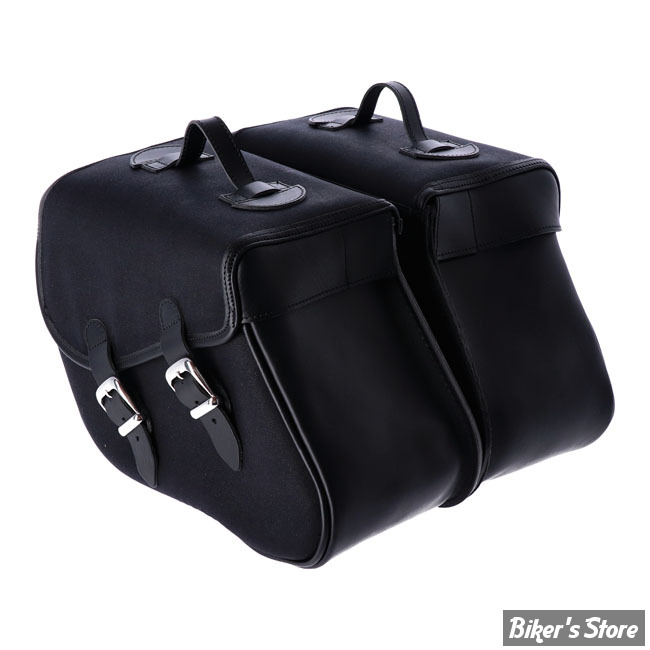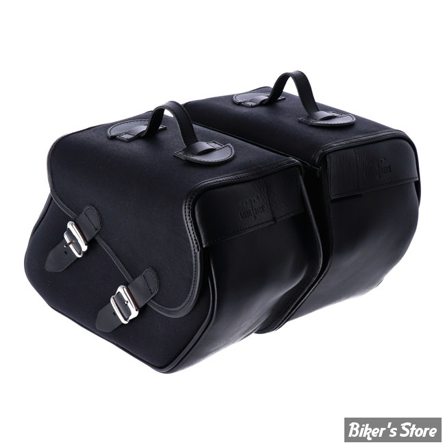 Pièces pour Custom > Harley-Davidson > BAGAGERIE > Latérales Dyna 1991/2017 > SACOCHES LATERALES - LONGRIDE MOTORCYCLESBAGS - HERITAGE WAXED COTTON SADDLEBAGS - 23 LITRES - COTON CIRÉ / CUIR RANGER - NOIR