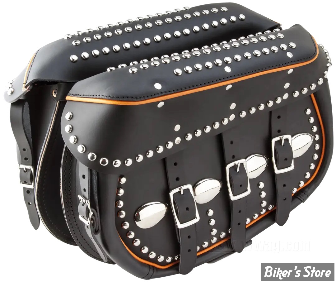 SACOCHES REPLICA - SOFTAIL - KING SIZE - POUR FL / SOFTAIL 4 VITESSES 84 UP - CUIR - NOIR - BORDURE ORANGE