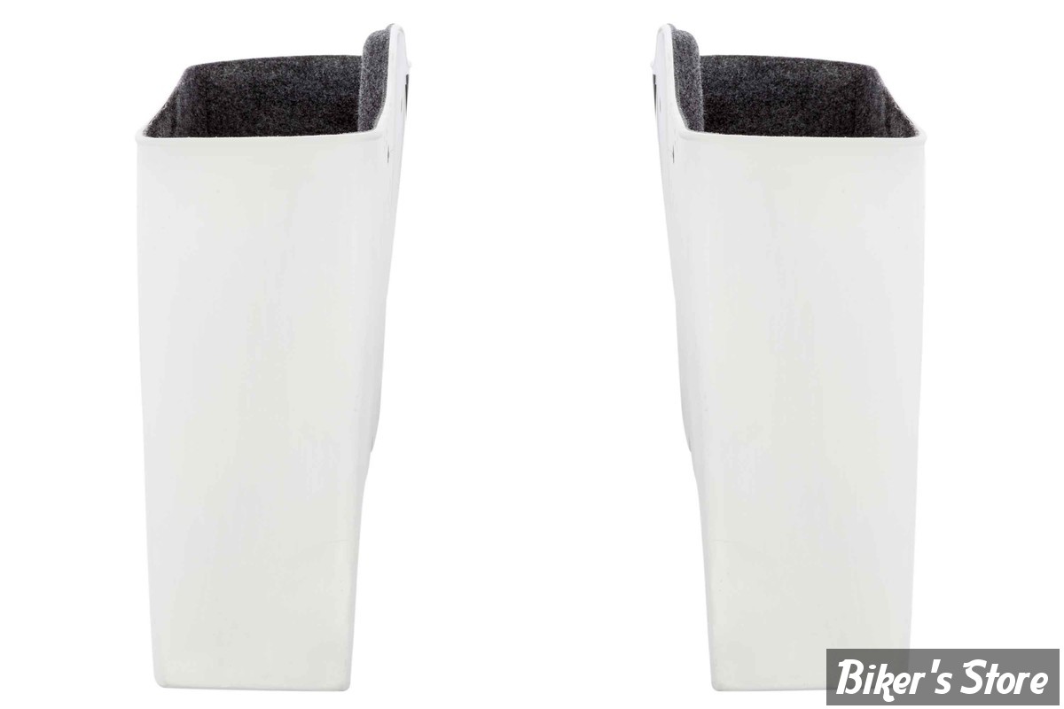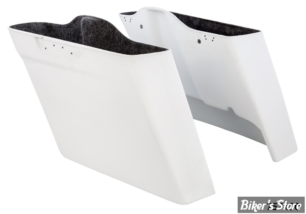 Ces corps de sacoches en fibre de verre et garde-boue arrière assorti sont fabriqués dans des moules de précision par Rick's. Ils remplacent parfaitement les sacoches d'origine et mesurent 4,2" (10,7cm) de plus que celles d'origine.