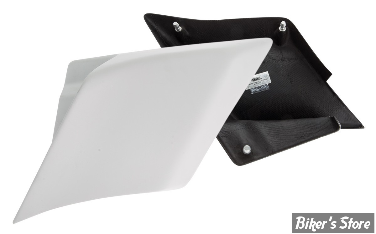 Ces corps de sacoches en fibre de verre et garde-boue arrière assorti sont fabriqués dans des moules de précision par Rick's. Ils remplacent parfaitement les sacoches d'origine et mesurent 4,2" (10,7cm) de plus que celles d'origine.