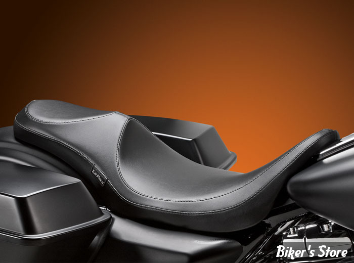 Cette selle Le Pera Villain a un look très attractif comme la Villain mais offrira plus de confort sur les longs trajets. Elle est livrée en standard en noir avec coutures noires noir. L'assise côté pilote est de 14 1/2'' et côté passager elle est de 11". Pour tous les 2008 au présent Touring y compris Road King, Street Glide et Dressers.