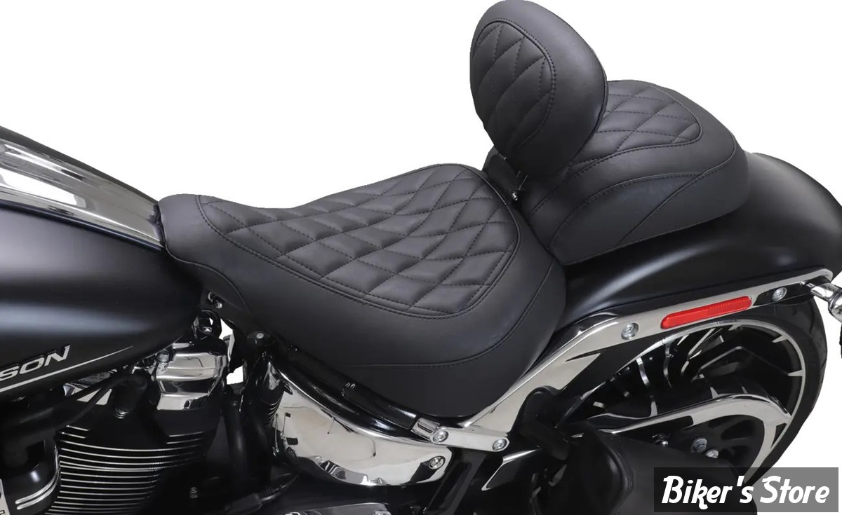 Selle Mustang avec dossier pilote pour Softail FXBR Breakout 117 à partir de 2023 . Pouf passager MCS709307 à commander séparément. La pièce
