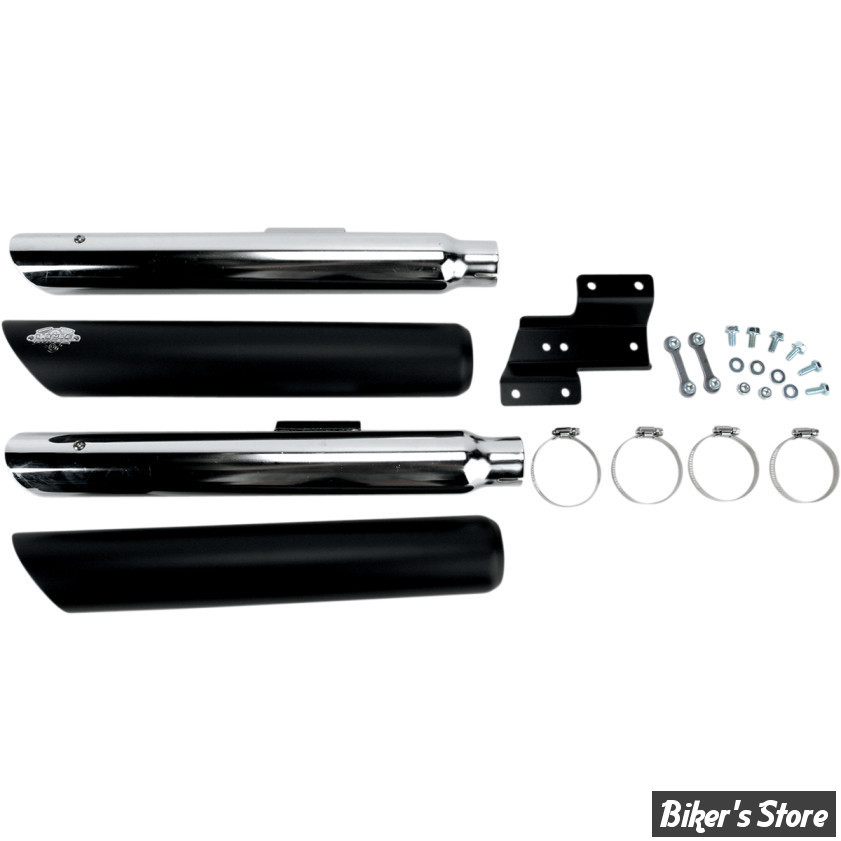 46842 - Twin Slash 3" pour Cross Bone FLSTSB de 2008 à 2011, Softail FLSTN Deluxe de 2007 à 2017, FLSTNSE de 2014 à 2015, FLS de 2012 à 2017, Slim S de 2016 à 2017. Pares chaleurs et chicane US compris. La paire