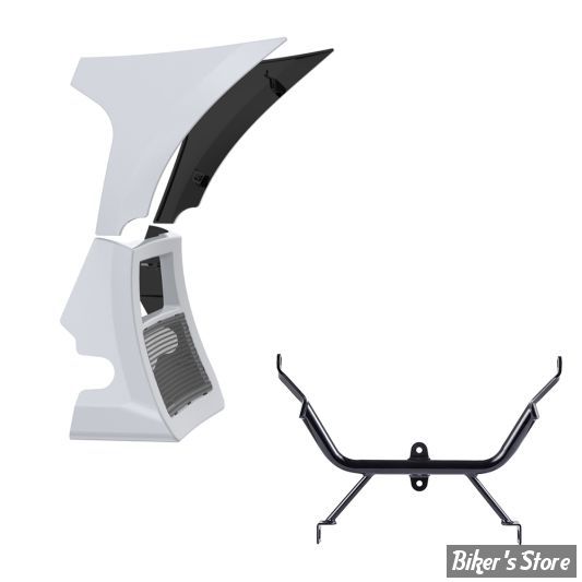 Le kit complet comprend des carénages latéraux, un becquet de menton et un support de support supérieur.